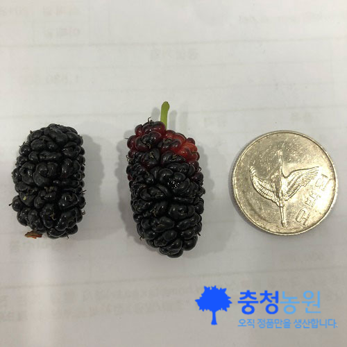 5. 열매 숙기는 6월중순이며, 과중은 5~6g정도로 오디중에서는 대과종에 속한다.