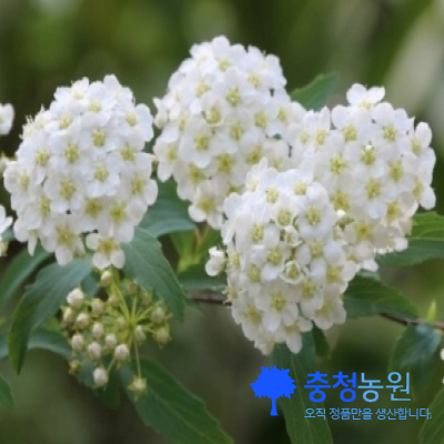 | 상품설명 | 특징 : 산야에서 흔히 자라는 식물로 높이 2m정도까지 자라고 흰꽃이 줄기 끝에 공모양으로 달려 나무 전체를 덮는다. 활용 : 조경수, 정원수, 절화용 등으로 활용된다. |