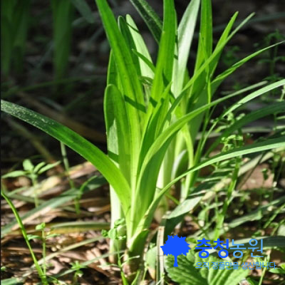 5. 잎은 짙은 녹색을 띠고 선형이며, 길이 30~50cm까지 자란다.