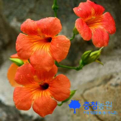 | 상품설명 | 나팔모양의 황홍색 꽃이 매우 화려하며 기품이 있다. 특징 : 가지에 흡착근이 있어 벽에 붙어 올라가고 길이가 10m에 달한다. 활용 : 관상가치가 높은 고급 조경소재이다. |