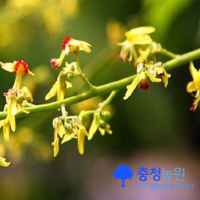 | 생태적 특성 | 꽃이 흔하지 않은 한 여름에 피는 황금빛이 꽃과 가을열매는 관상가치가 높다. |
