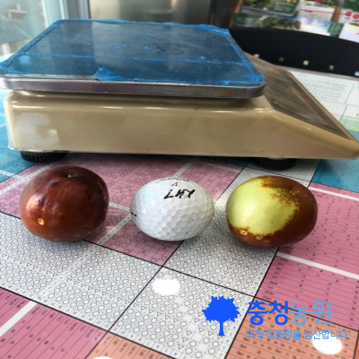 4. 숙기는 9월 중순이며 평균과중은 60g~80g까지 최대 120g까지 나가는 초대형 왕대추이다.