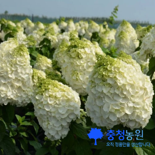 | 상품설명 | 원뿔모양의 큰 꽃차례로 크리미하고 강렬한 흰색을 띠며, 꽃머리는 녹색 포인트를 가지고 있다. 특징 - 꽃송이가 탐스럽게 크고, 아이스크림콘처럼 빽빽하게 뭉쳐진 눈처럼 하얀꽃을 볼 수 있다. - 큰 꽃볼을 보려면 이른봄에, 여름장마와 태풍에 영향을 적게 받으며 적당한 크기의 많은 꽃볼을 보려면 5월중순경 1회 전정해 주면 좋다. 활용 : 추위와 병충해에 강해 전국 월동 가능하며, 정원울타리나 포인트 나무에 적합하다. |